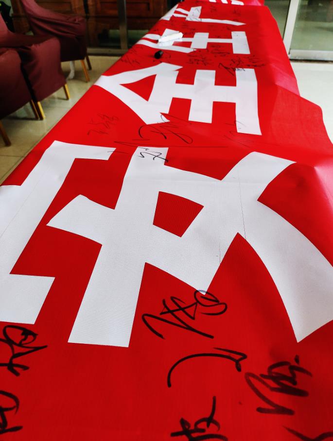 一是開(kāi)展“安全生產(chǎn)月”活動(dòng)啟動(dòng)儀式?;顒?dòng)期間,現(xiàn)場(chǎng)宣讀安全生產(chǎn)誓詞,參會(huì)人員集體簽訂安全承諾書(shū),并在主題條幅上簽名。