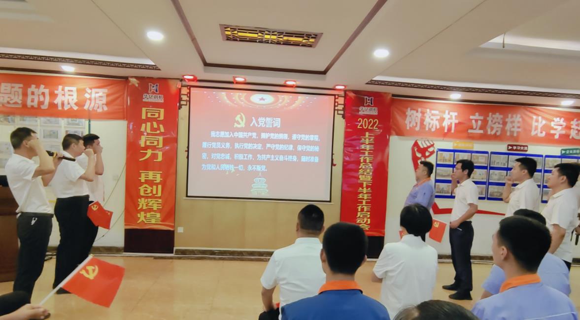 在公司黨支部書記、副總經(jīng)理楊鴻領誓下,全體黨員佩戴黨徽,舉起右拳,面向黨旗重溫入黨誓言,進一步激勵和督促黨員,在任何情況下不忘身份,牢記信念,永葆共產(chǎn)黨員本質,充分發(fā)揮模范帶頭作用,鼓舞自己在工作中繼續(xù)奮發(fā)有為,不斷前進。宣誓后公司所有黨員為慶祝中國共產(chǎn)黨建黨101周年獻歌,一曲《我和我的祖國》讓人回想起了革命老前輩們的奮斗歲月,鼓勵我們不忘初心,繼續(xù)前行。